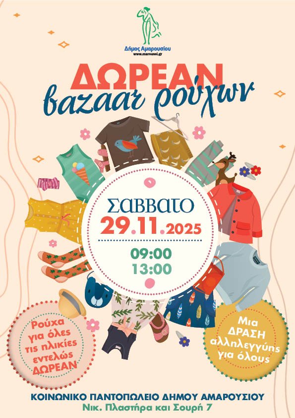 Κοινωνικό Παντοπωλείο Αμαρουσίου: Δωρεάν Bazaar Ρούχων