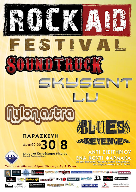 Την Παρασκευή 30 Αυγούστου οι Soundtruck, Skysent LU, Nylon Astra και Blues Revenge, ενώνουν τις δυνάμεις τους και ανεβαίνουν στην σκηνή του Δημοτικού Κηποθεάτρου Νίκαιας, σε μια blues/rock διαδρομή, με ένα κοινωνικό σκοπό: τη συλλογή φαρμάκων για την ενίσχυση του κοινωνικού φαρμακείου του Δήμου Νίκαιας Αγ. Ιωάννη Ρέντη. Σε αυτο το mini festival, που θα ονομάζεται Rock Aid 2013, θα ισχύει ανταλλαγή εισόδου με ένα κουτί φάρμακο.